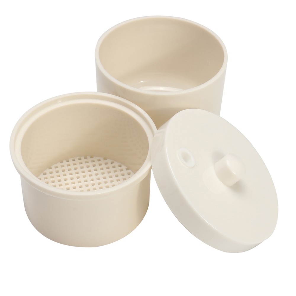Round disinfectant bath with removable inner strainer basket and lid, designed to be used for the manual cleaning of burs.Autoclavable can be heated to 134 ℃.