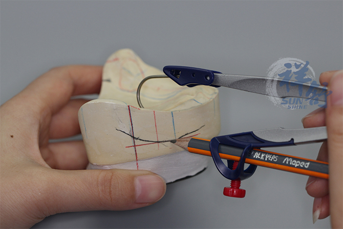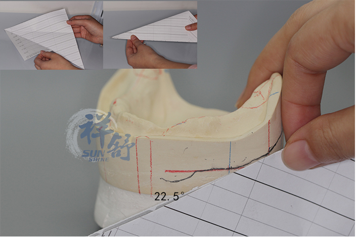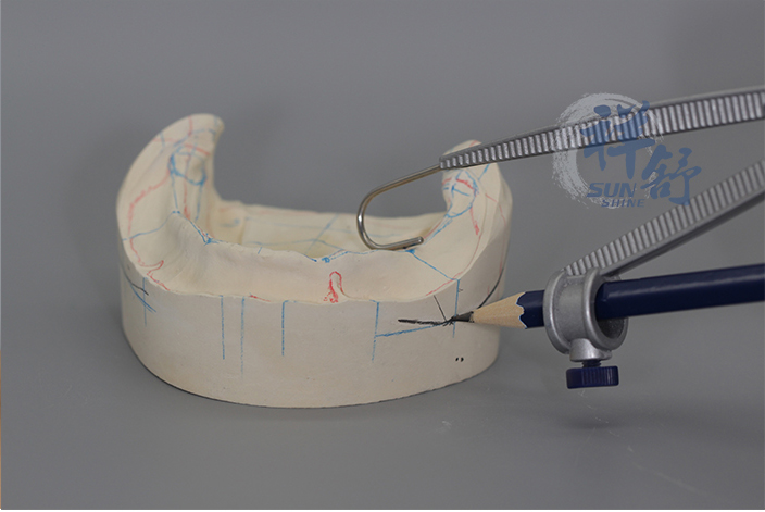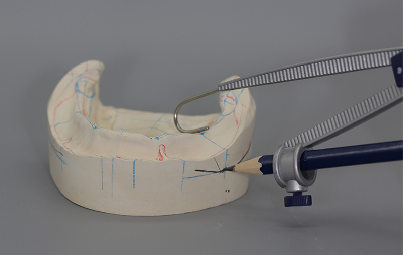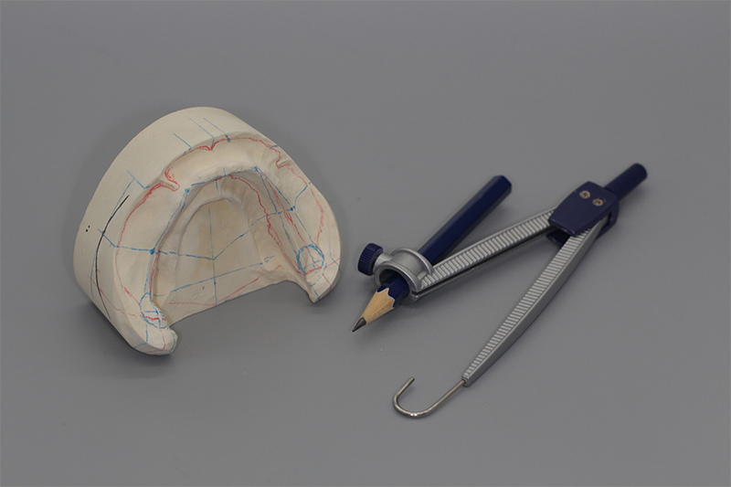 The basic prerequisite for the fabrication of a full or partial denture is a detailed and extensive model analysis. Perfect model analysis also includes marking the profile of the alveolar ridge. This is done easiest by transfer to the model base using the profile compass. Reproduction of the alveolar ridge ensures the correct placement of the teeth as the contour is still easily identified even after the wax template has been applied. The right application The loop-shaped end of the profile compass is placed on and moved along the alveolar ridge. Hereby, the pencil draws the alveolar ridge profile in parallel on the model base. This illustrates the lowest point of the ridge, and the position of the masticatory center can be defined.DETAIL IMAGESAPPLICATIONS1. Adsorptive dentureDraw the top arc of alveolar ridge on the side of the model and draw the front edge line of the posterior molar pad.Check whether the angle between the top line of alveolar ridge and the horizontal plane in the molar area is greater than 22.5 degrees. If it is greater than 22.5 degrees, consider whether to row 7 or reduce the occlusion of 72. Lingual concentrated jawDraw the top arc of alveolar ridge on the side of the model and draw the front edge line of the posterior molar pad.Check whether the angle between the top line of alveolar ridge and the horizontal plane in the molar area is greater than 22.5 degrees. If it is greater than 22.5 degrees, consider whether to row 7 or reduce the occlusion of 7.