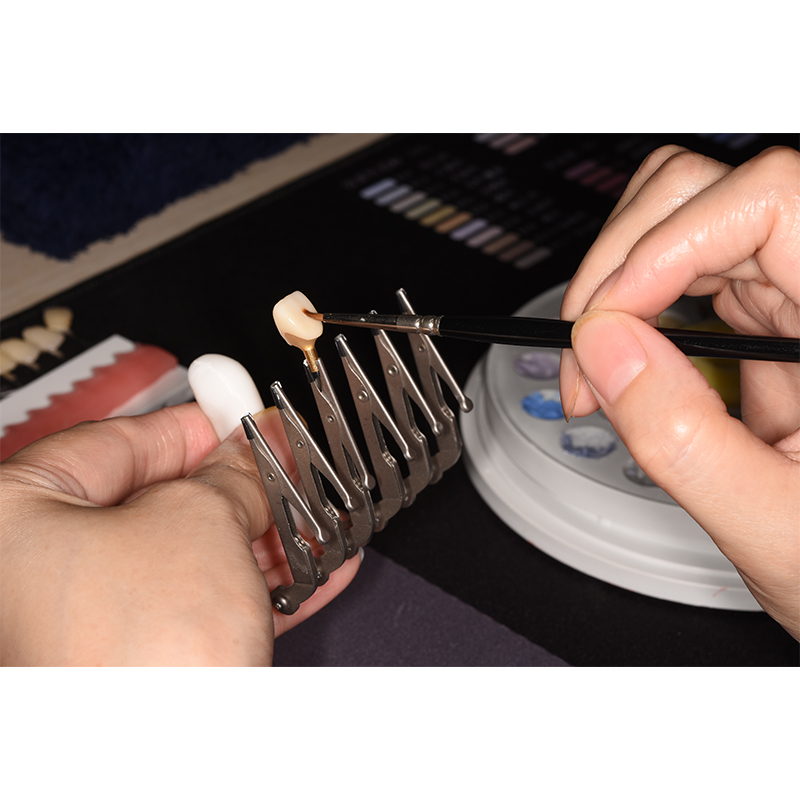 Used to construct wax teeth that faithfully reproduce natural teeth with a layering system similar to that used by prosthodontists for dental ceramics.Operation method: 1. Apply Vaseline to the silicone rubber impression or all-ceramic tooth tissue surface. 2. Use a wax spoon to melt and drop the wax into the silicone rubber impression or all-ceramic tooth tissue surface. 3. Insert the dowel pins or other retention device and take it out after the wax is cooled.