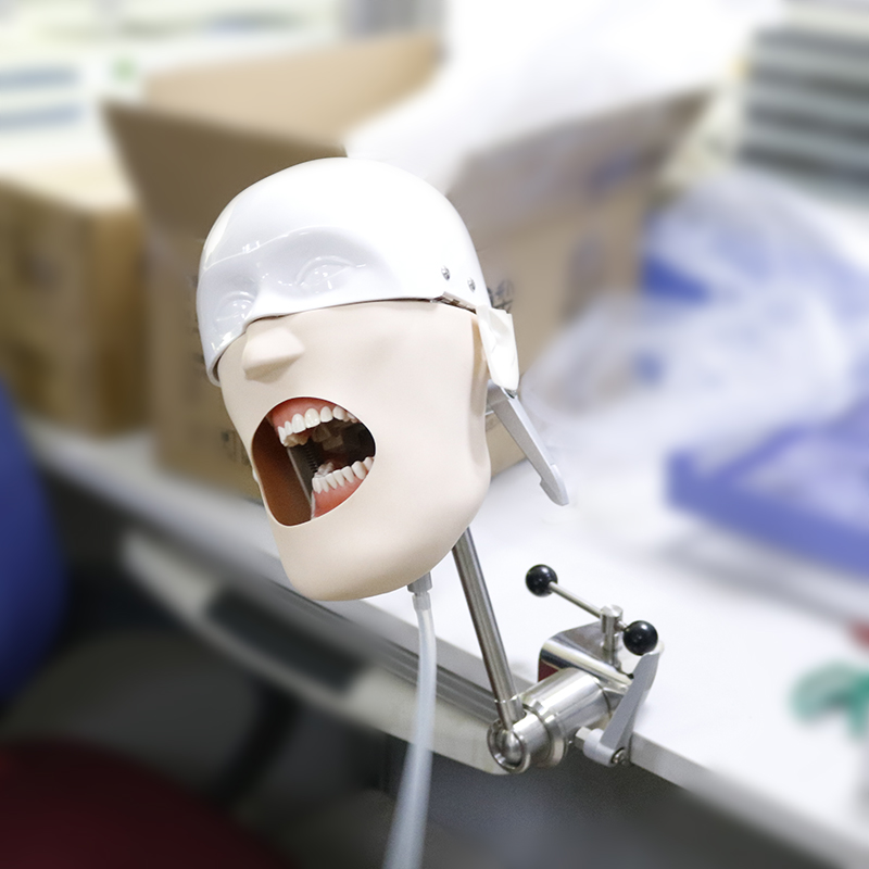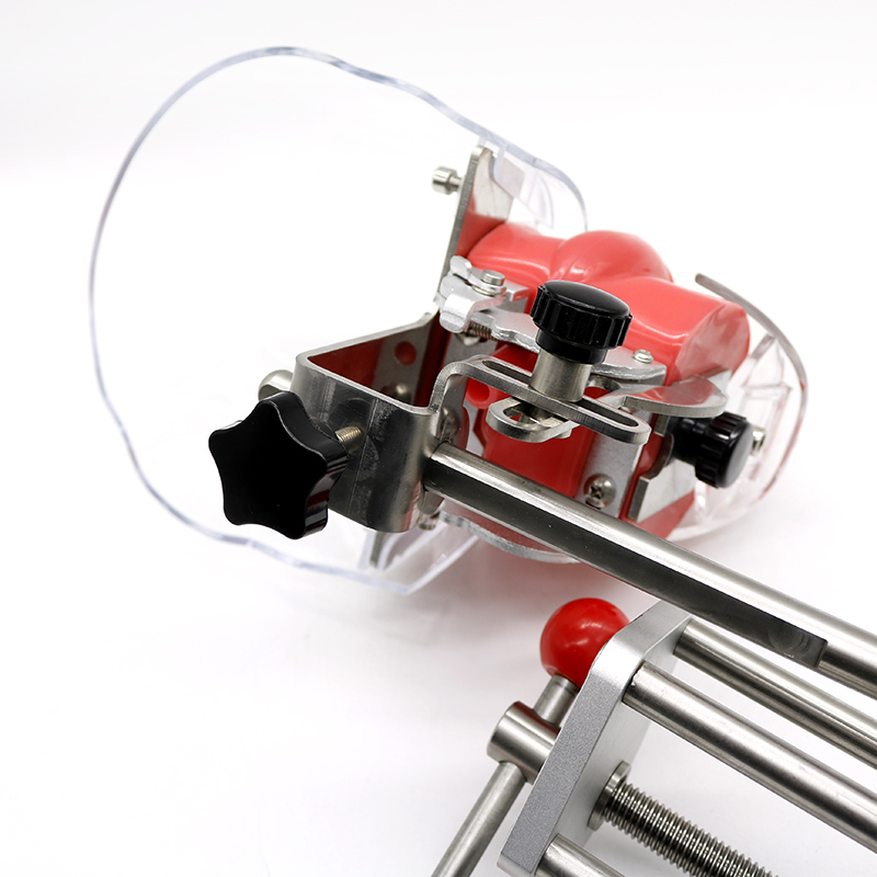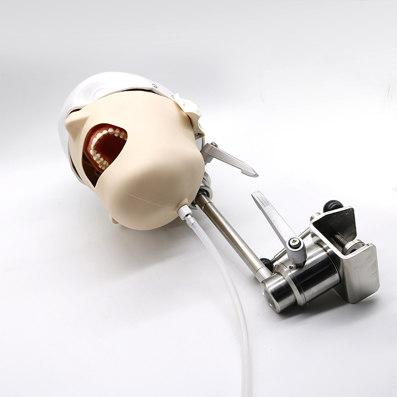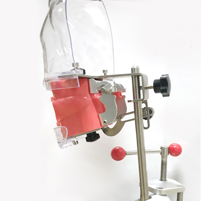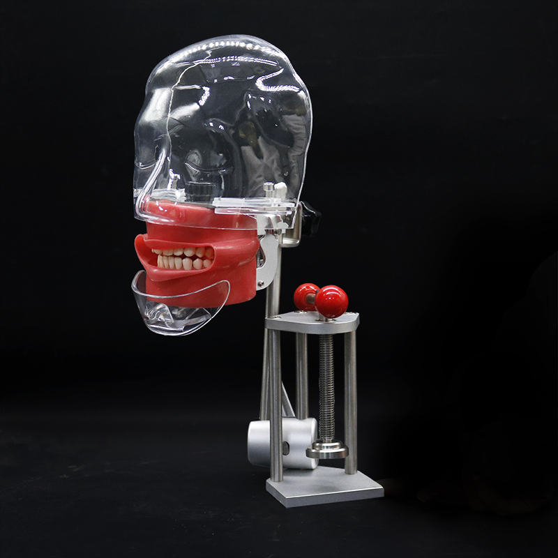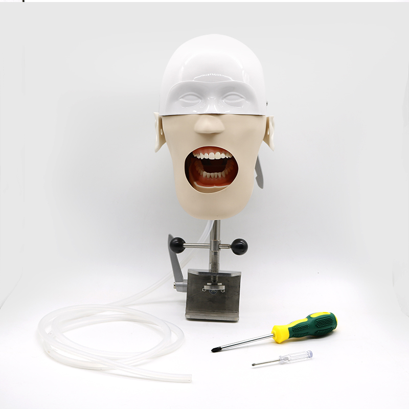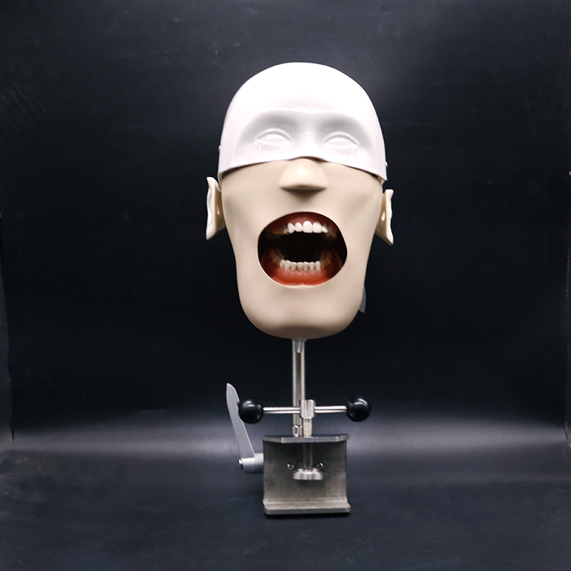 The simulation head model is mainly used in the experimental training of common diseases diagnosis and treatment, prosthodontics, oral preventive medicine, oral and maxillofacial surgery, etc. The portable practice system with rich uses has such a compact structure that students of Stomatology, hygienists and dental assistants can practice at home and in the workplace to improve their skills. Its functions are enough to be used in schools and practice places. It can meet the basic needs of oral practice teaching. The dental mold with occluder can be easily and quickly disassembled on the head mold, and there is no need to disassemble from the occluder again! It consists of the following parts (1) Head: the head cover made of high-strength transparent resin material is smoothed to reproduce the orbital ear plane, nasal alar ear plane, jaw plane and mandible cutting point according to the anatomical requirements. The anatomical external ear is used for facial arch practice. (2) Mask: made of bionic rubber material, vivid color, close to human skin feel, comfortable feel, durable. Exclusive design of the drainage device (3) Shoulder strut: made of stainless steel, green and environmental protection, simulating normal human body. (4) FE occluder: made of aluminum alloy, it can open and close the mouth, extend forward and move laterally to simulate mandibular movement. The distance between the two condylar heads was 110 mm, and the opening distance was 50 mm. (5) Universal adjusting handle: by adjusting the large and small universal joints, the position of the imitation head mold and the shoulder body can be adjusted at will.Type-AType-BType A