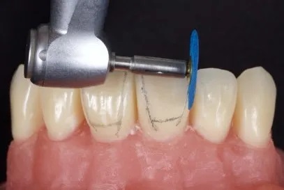 * Remove excess composite and contour the restoration using a fine diamond or carbide bur.