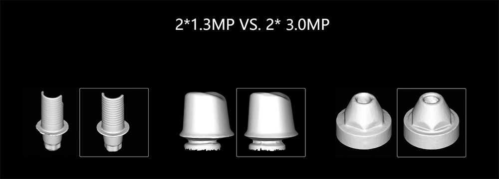 Thanks to dual 3.0 MP high resolution cameras, Qscan-Pro can perfectly capture edge lines of abutments and features of models