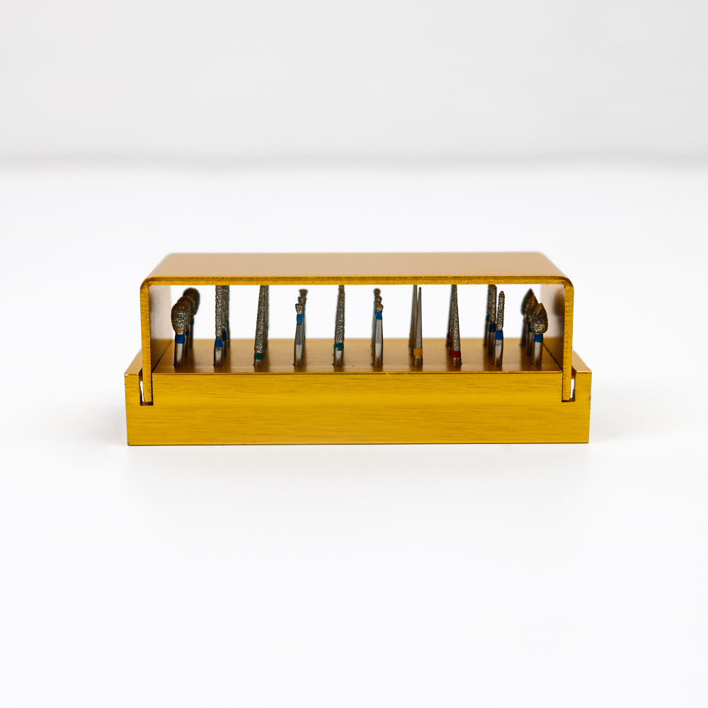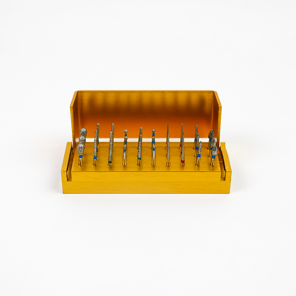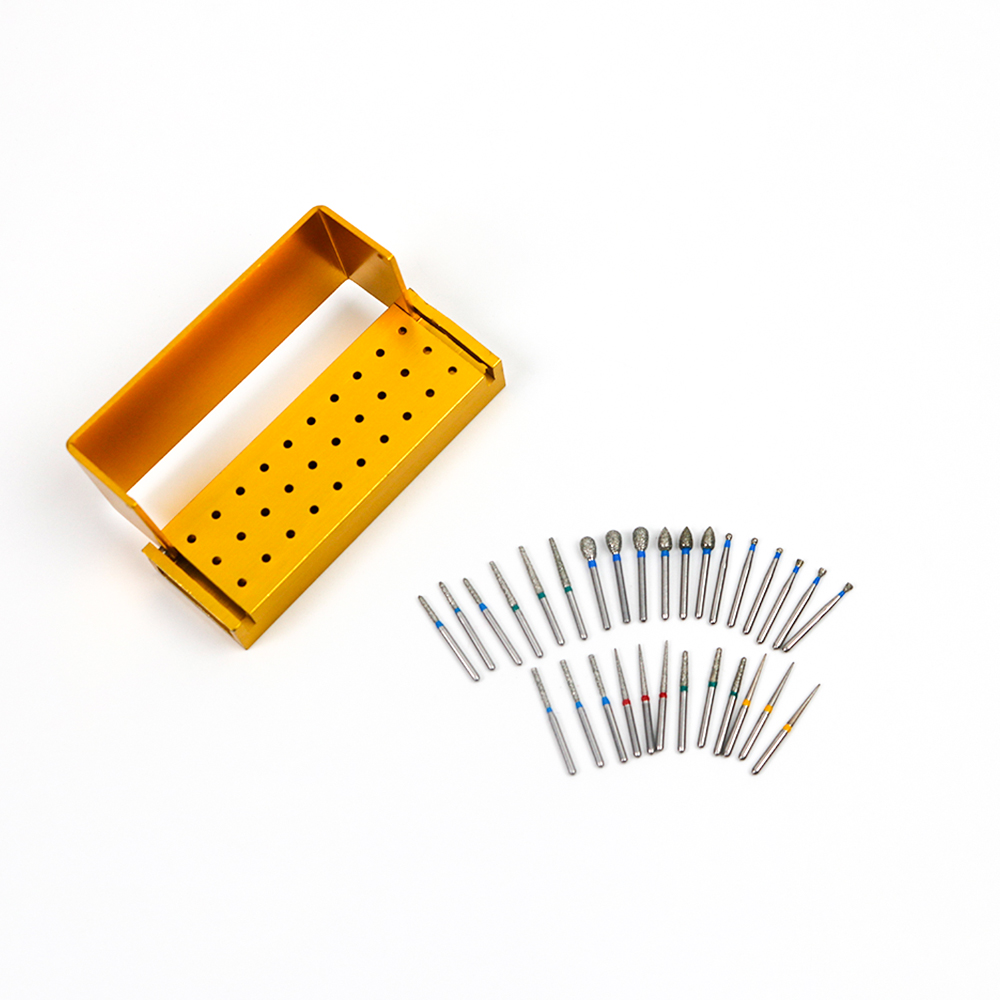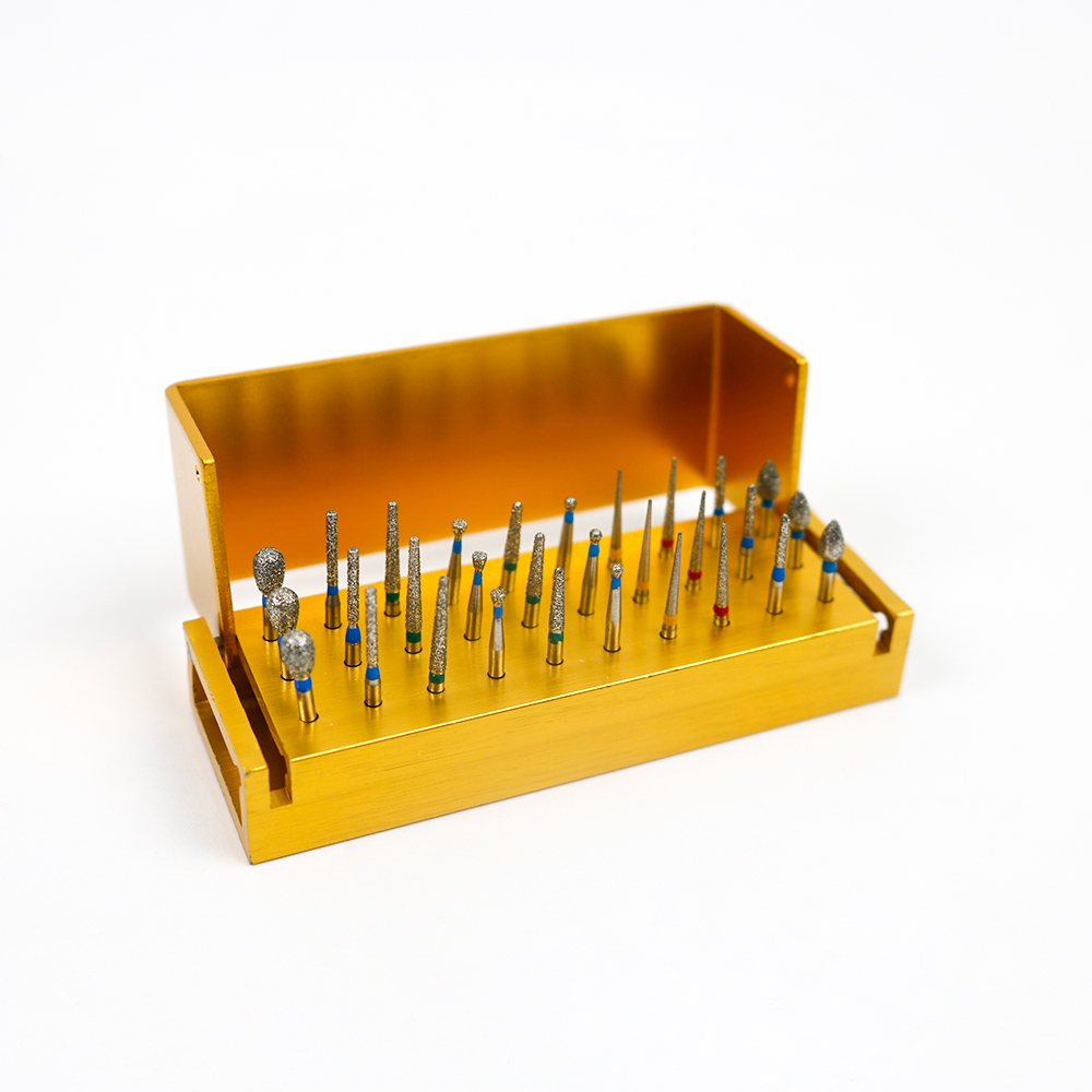 30pcs Dental High Speed Diamond Burs Assorted Set with Golden Aluminum Block